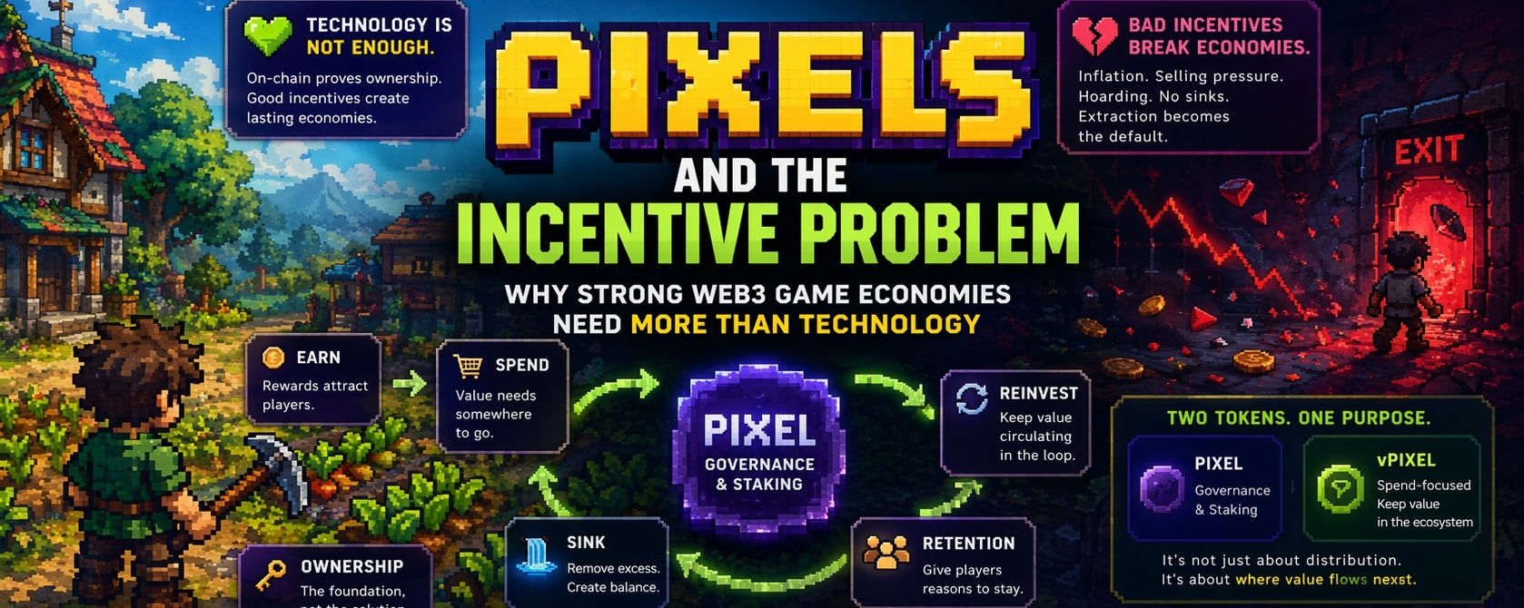 A blockchain can be fast, transparent, and technically impressive. A token can be live, tradable, and easy to plug into a system. But none of that, on its own, creates a healthy game economy. That’s what makes Pixels interesting to me. Under the farming game surface, it feels like the real thing the project is struggling with is much deeper: how do you build incentives in a way that makes players, rewards, and the game itself strengthen each other instead of quietly pulling the whole system apart?