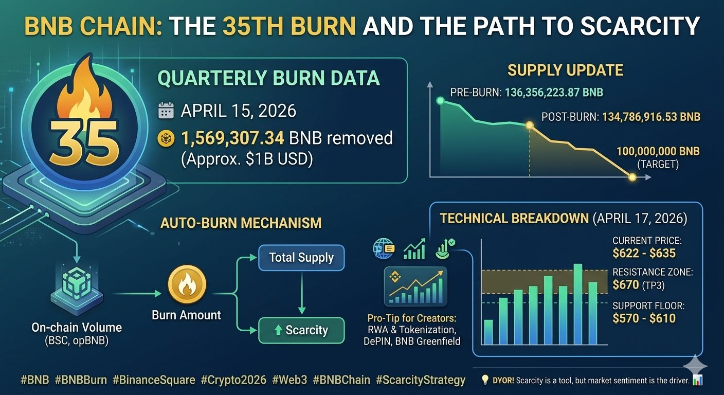 The 35th Quarterly BNB Burn is officially complete, marking a massive milestone for the ecosystem. On April 15, 2026, the BNB Foundation removed 1,569,307.34 BNB (valued at approximately $1 Billion USD) from circulation.