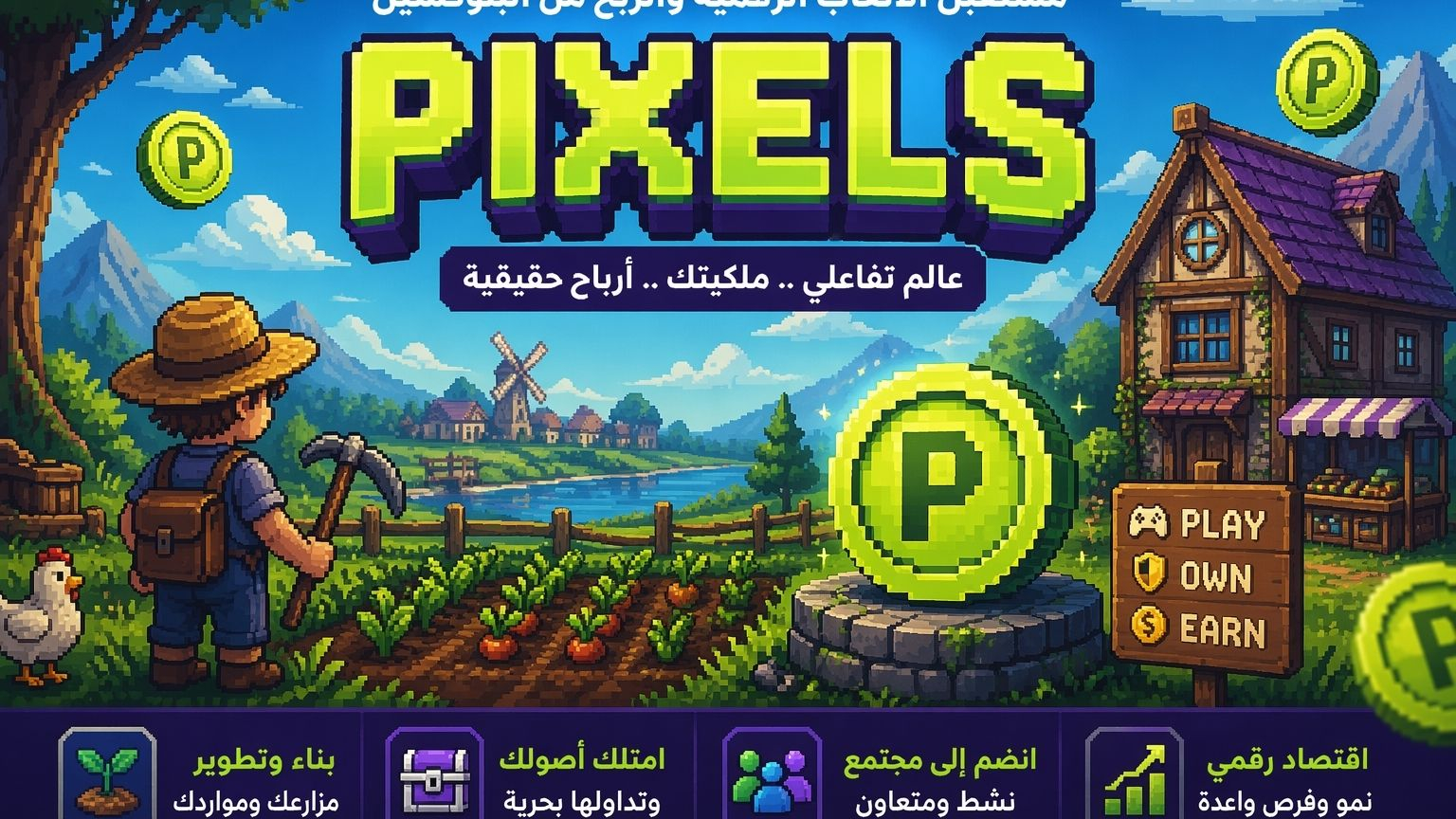 يُعد مشروع عملة Pixels من المشاريع الحديثة في مجال #الألعاب المبنية على #البلوكشين ، حيث يجمع بين الترفيه والاقتصاد الرقمي داخل عالم افتراضي تفاعلي. يتيح للاعبين بناء المزارع وتطوير الموارد والتعاون مع الآخرين، مع إمكانية تحقيق دخل من خلال نظام اللعب مقابل الربح (Play-to-Earn). يتميز المشروع بفكرة الملكية الرقمية، إذ يمتلك اللاعبون أصولهم داخل اللعبة ويمكنهم بيعها أو تداولها بحرية. كما يركز على تطوير مستمر ومجتمع نشط، ما يجعله خيارًا واعدًا لمحبي الألعاب والتقنيات الحديثة.