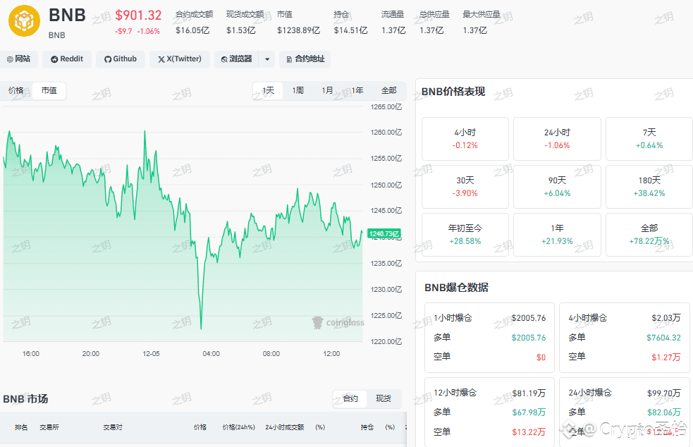 当前BNB于关键支撑位附近呈现多空激烈博弈态势,市场短期情绪偏空,但基本面数据与持仓量显示长期结构性支撑依然稳固,需警惕高杠杆下的清算风险。价格在900美元关口的表现将成为未来一周方向性选择的关键。