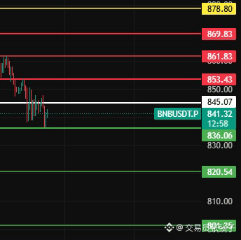 今天只有站稳845上方1-2小时级别才开始反弹,上方压力位留意853-861-870这几个位置附近!#BNB走势