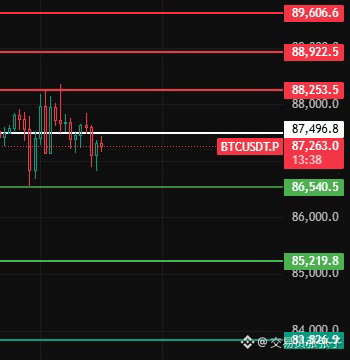 今天只有站稳87500上方1-2小时级别才开始反弹,上方压力位留意88250-88920-89600这几个位置附近!#BTC走势分析