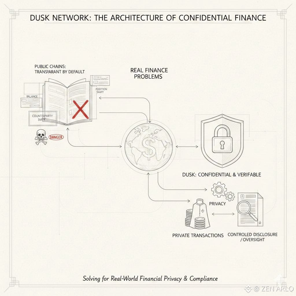 Dusk, I see a project that starts from a real finance problem instead of a trend. Most public chains are transparent by default, and that sounds fair until you imagine regulated markets living on that surface. Every balance, every counterparty relationship, every position shift becomes public data. In real financial systems, that is not just inconvenient, it can be dangerous. Dusk is built around the idea that confidentiality is not optional for finance, but neither is verification. So the chain is designed to keep transactions private when they should be private, while still allowing controlled disclosure when oversight is required.