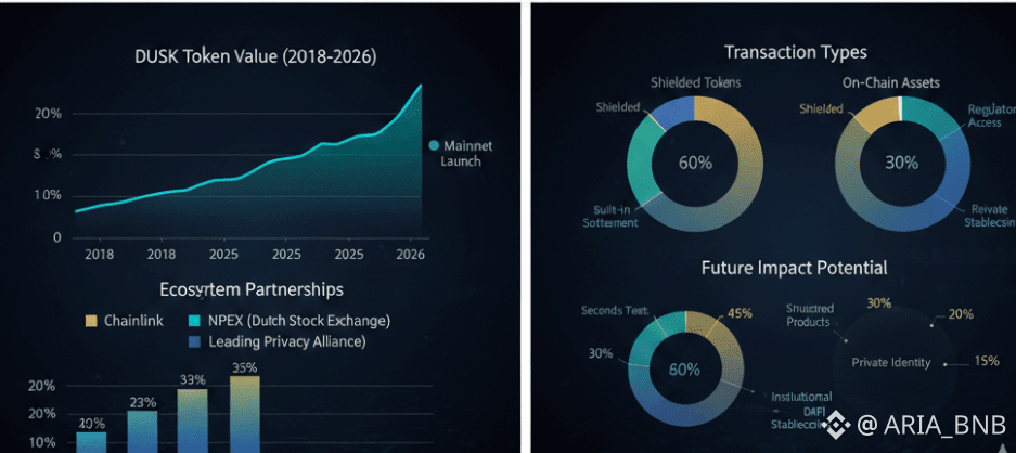 There are some stories in the crypto world that feel loud from the start, and then there are others that grow quietly in the shadows, gathering power until suddenly everyone realizes something big has been building right under their noses. Dusk is exactly that kind of story. It began back in 2018 with a bold idea that most people in blockchain thought was either impossible or too complicated to ever work. But Dusk kept building, kept refining, kept pushing toward a world where blockchain could finally meet real financial regulations without losing the heart of decentralization or the soul of privacy. And now, standing in 2026, Dusk is no longer a theory or a dream. It’s a living, functioning Layer-1 chain built for the world of regulated finance, privacy-preserving markets, and on-chain assets that behave exactly like the financial system demands, but without the heavy friction that slows today’s markets to a crawl.