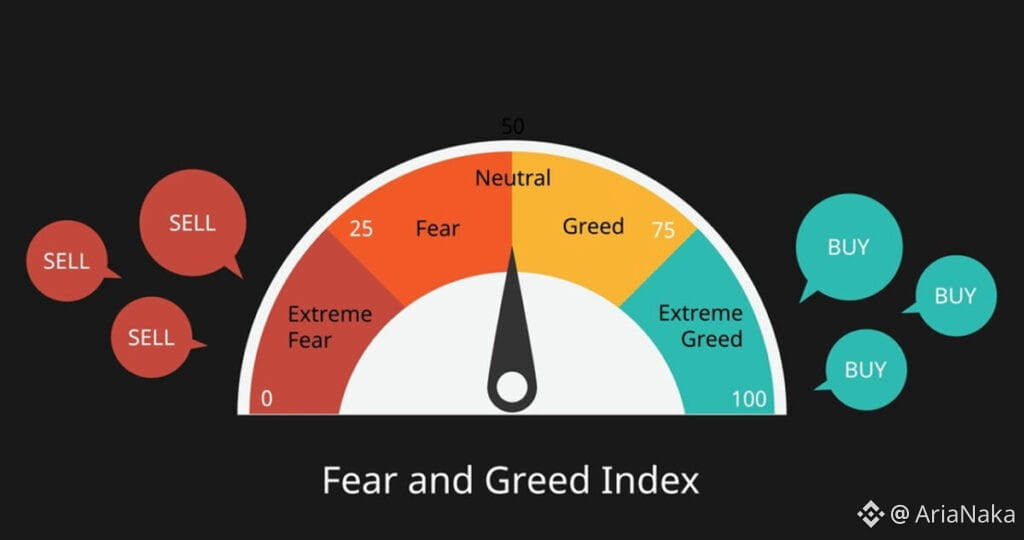 Fear often reflects panic selling or undervaluation, while greed can signal FOMO, overheating, and potential bubbles.