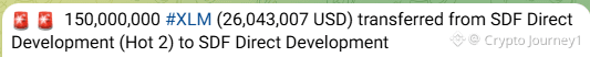 $XLM 💰 A total of 150,000,000 $XLM (~$26.04M) has been transferred within the Stellar Development ecosystem — from SDF Direct Development (Hot 2) to another SDF-controlled wallet 👀