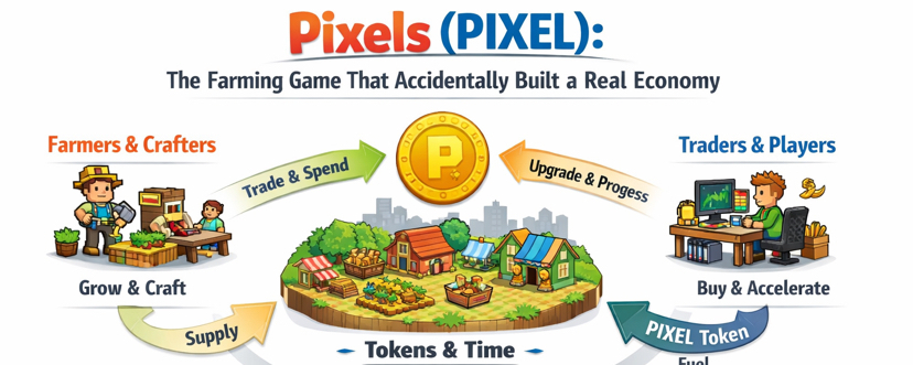 At first glance, Pixels feels simple. You plant seeds, harvest crops, gather materials, and slowly expand your land. It’s calm, colorful, and easy to understand. But after spending time inside the world, something else becomes clear: the real game isn’t farming — it’s how players organize an economy together.