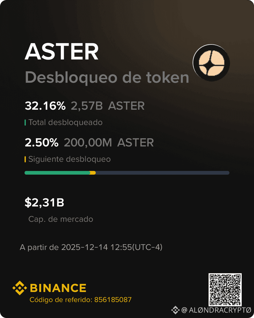 El concepto es simple 200 millones de tokens ASTER que estaban retenidos (bloqueados) por contratos inteligentes ahora se están liberando y entran a la circulación. Este volumen no es menor, representa aproximadamente el 2.50% de la capitalización de mercado actual.