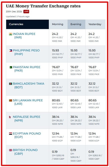 Tasas de cambio para transferencias de dinero en los EAU