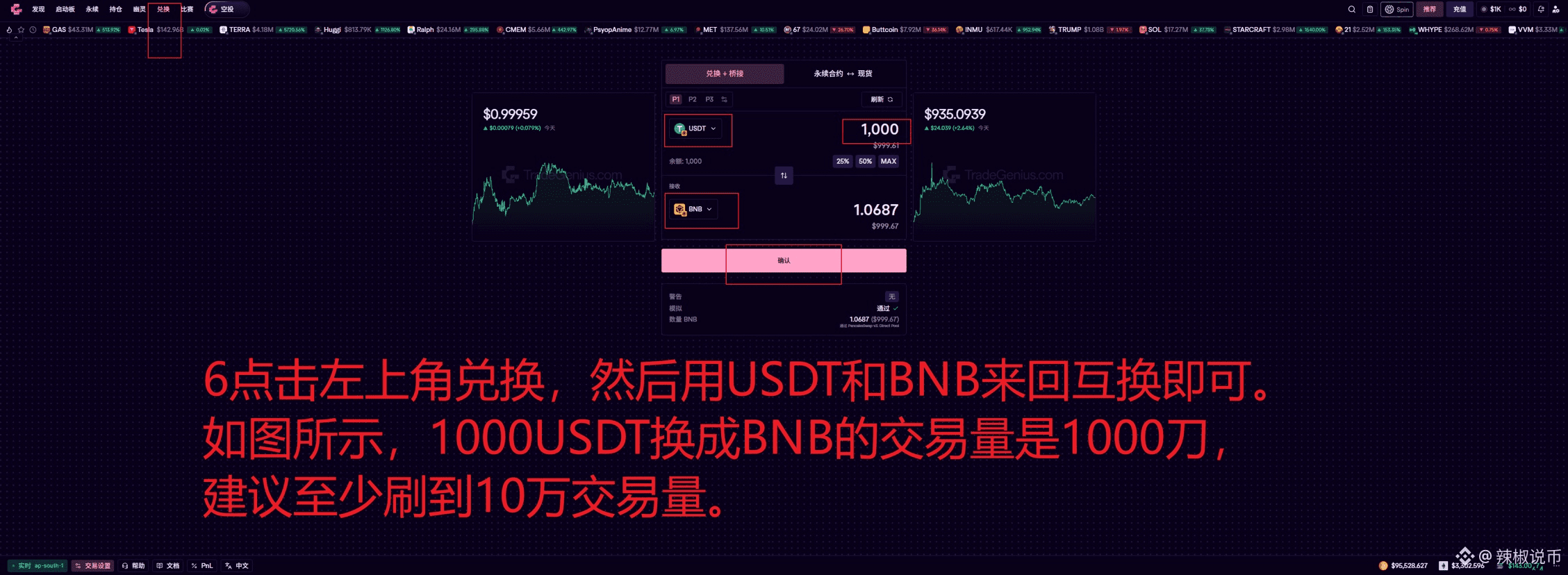 ✨我已经开始刷了。获取Genius积分的关键是刷交易量,积分后续会兑换成空投。每天花几分钟用USDT来回换BNB就可以获得积分,比币安Alpha还简单。手把手教程已经放在图片中,小白看了也能懂。