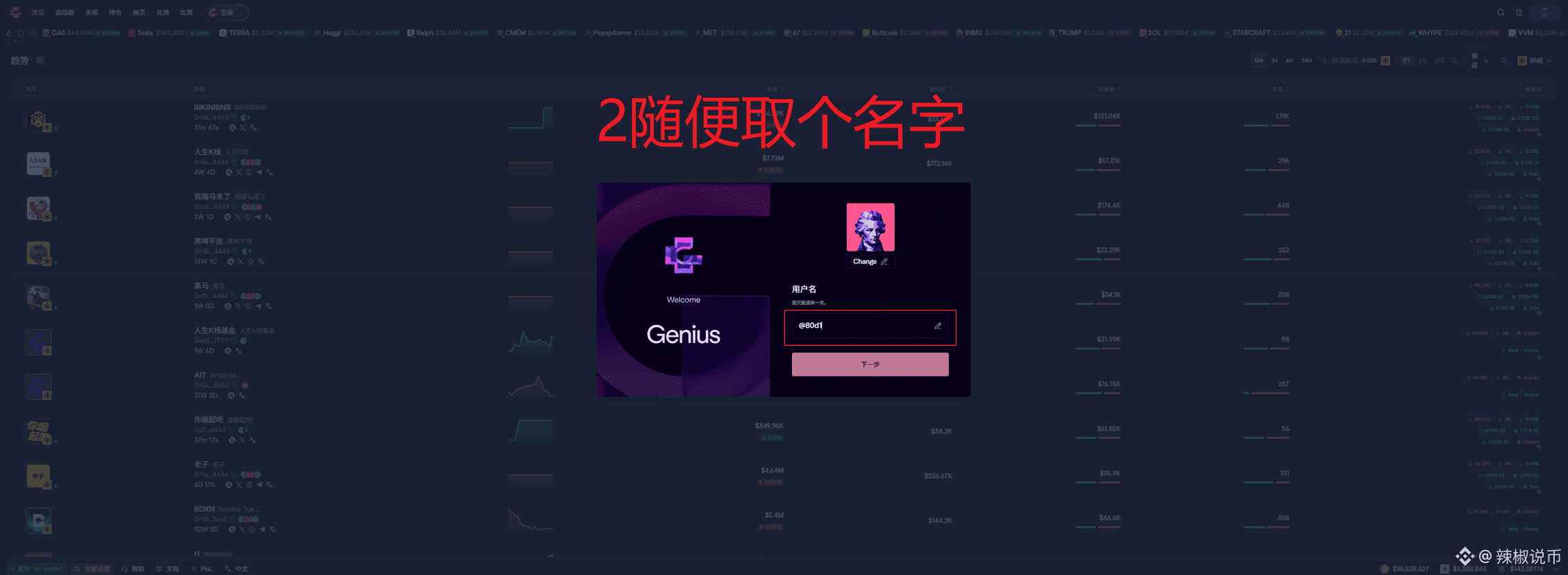 前两天币安投资了8位数(上千万)给去中心化交易所Genius,CZ站台当顾问。就差CZ拿着话筒说:Genius必须上XX。Genius是一个可以交易现货,合约以及冲meme的一体式交互平台。