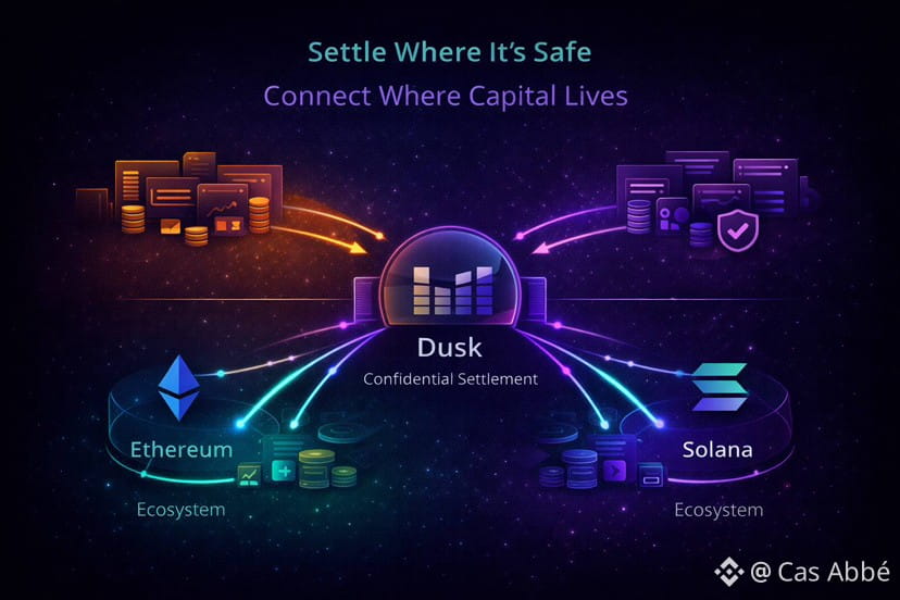 Dusk regards interoperability as being fundamental to the market. Physical assets and liquidity do not remain in one chain. Ecosystems spread their capital and users and strategies.