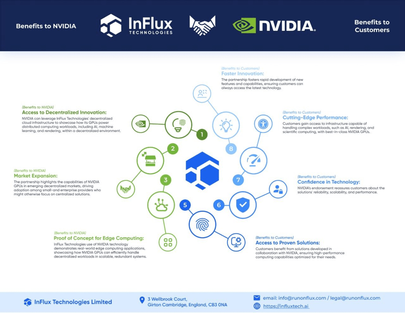 En asociación con NVIDIA, Flux integra clusters de GPU en su red, permitiendo entrenamiento e inferencia acelerados por CUDA que rivalizan con las ofertas centralizadas a una fracción del costo.Capacidades de IA de Extremo a Extremo