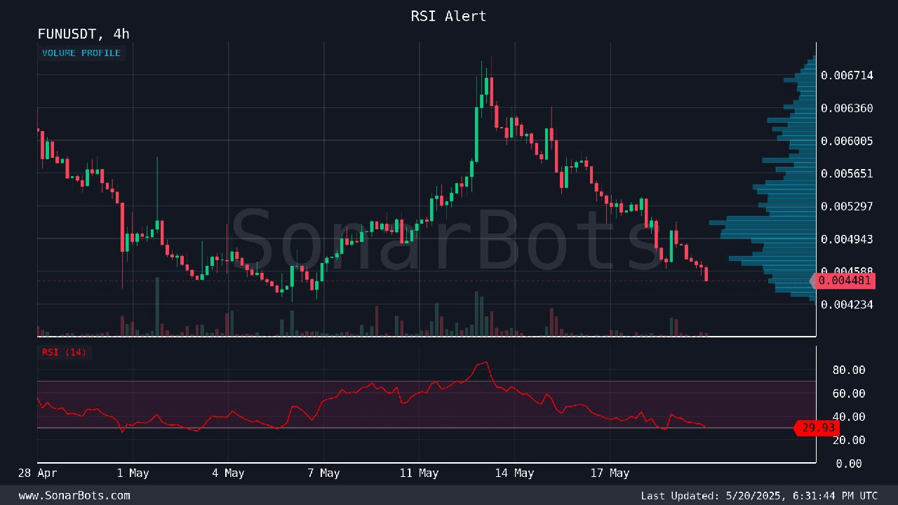 Resumen del Mercado: $FUN/USDT está actualmente en $0.0035, con una capitalización de mercado de $36.5M y un volumen de 24 horas de $1.2M, según los datos de Binance. Su suministro circulante es de 10.3B de un suministro total de 17B, según CoinMarketCap. El sector de juegos se está calentando; $CATI ($0.0921) y $MERL ($0.145) están viendo actividad, pero el precio de $FUN ha bajado un 90% desde su pico en 2017 de $0.035, reflejando fundamentos débiles a pesar de recientes ganancias diarias del 3.5%.