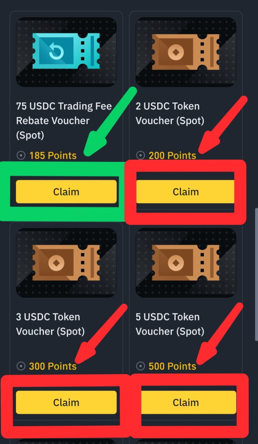 El reembolso de tarifas de 75 USDC cuesta solo 185 puntos, mientras que el token de 2 USDC cuesta 200 puntos. ¡Eso significa que obtienes hasta 37x más valor (si usas todo el reembolso de $75) por menos puntos!