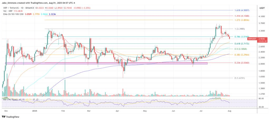 En el momento de la publicación, XRP se cotizaba a $2.92.