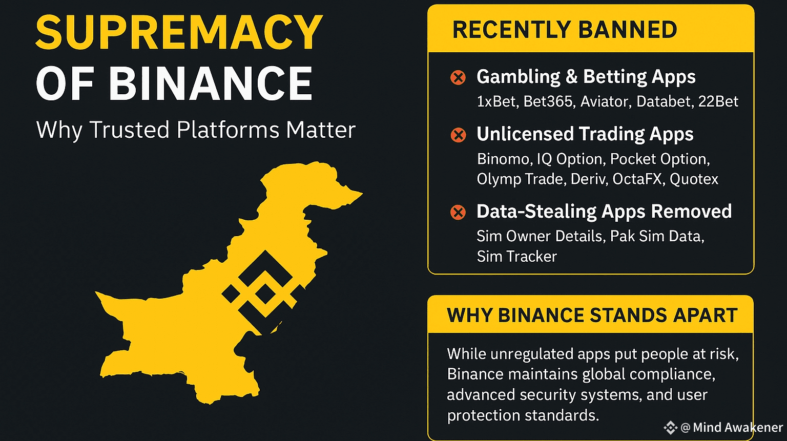 Recientemente, la Autoridad de Telecomunicaciones de Pakistán (PTA) prohibió 46 aplicaciones ilegales involucradas en juegos de azar, comercio no autorizado y robo de datos. Esta represión destaca por qué elegir una plataforma regulada y segura como Binance es esencial para la seguridad digital.