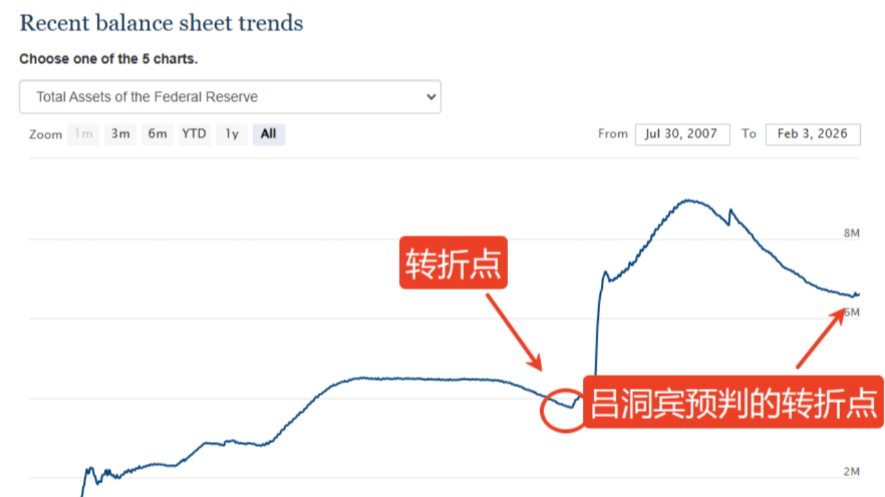 Los que no lo crean, vayan rápidamente al sitio web de la Reserva Federal y revisen el balance de activos y pasivos de la Reserva Federal; el viejo Powell ha estado haciendo reducción de balance desde 2023 para impulsar el dólar. Sin embargo, ha llegado el punto de inflexión: