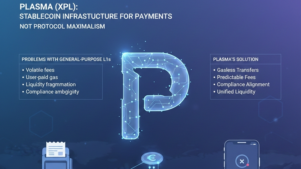La mayoría de las redes blockchain se construyen primero como plataformas de propósito general y en segundo lugar como sistemas de pago. Plasma adopta el enfoque opuesto. En lugar de competir para alojar cada posible aplicación, se posiciona como una infraestructura de pagos nativa de stablecoin, optimizada en torno a costos predecibles, alineación de cumplimiento y simplicidad operativa.