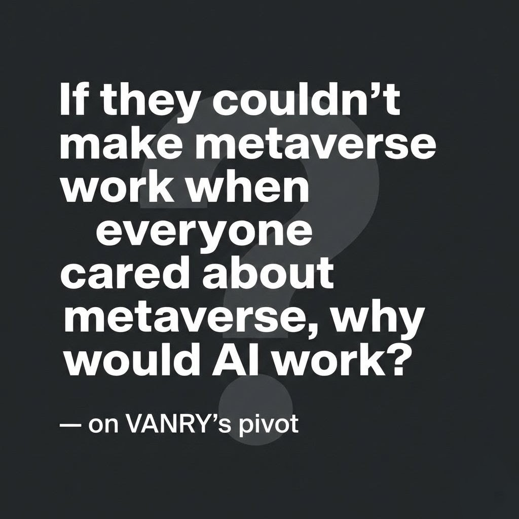 the technology didn't fundamentally change between "metaverse VANRY" and "AI VANRY"