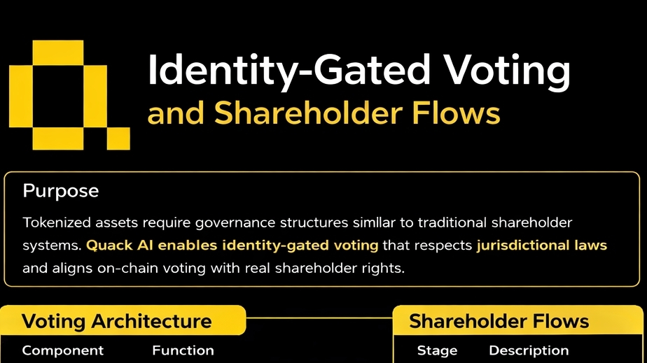 En un mundo de activos digitales que está en rápida expansión, la necesidad de una gobernanza sólida se vuelve cada vez más crucial, especialmente para los activos tokenizados que requieren un mecanismo similar al de la propiedad de acciones tradicionales. @QuackAI está aquí para cerrar esta brecha al introducir el mecanismo de "Votación con Identidad y Flujos de Accionistas".