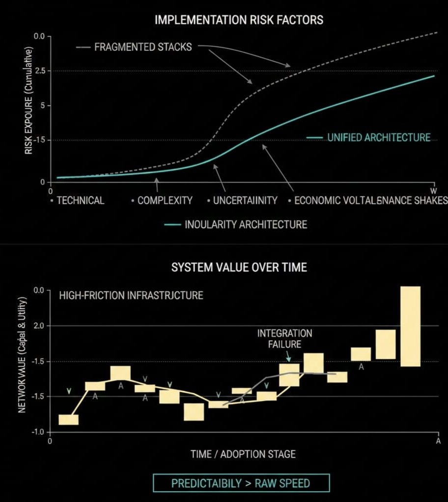 Here’s the thing: implementation risk quietly kills off even the most technically impressive networks. I’ve watched protocols with jaw-dropping throughput numbers get sidelined because actually plugging them in is a headache too complicated, too unpredictable, or just financially unstable. Enterprises crave stability. Crypto-native builders need systems that fit together easily. If integration feels risky or scattered, adoption stalls. High TPS doesn’t matter if nobody wants to touch the stack.