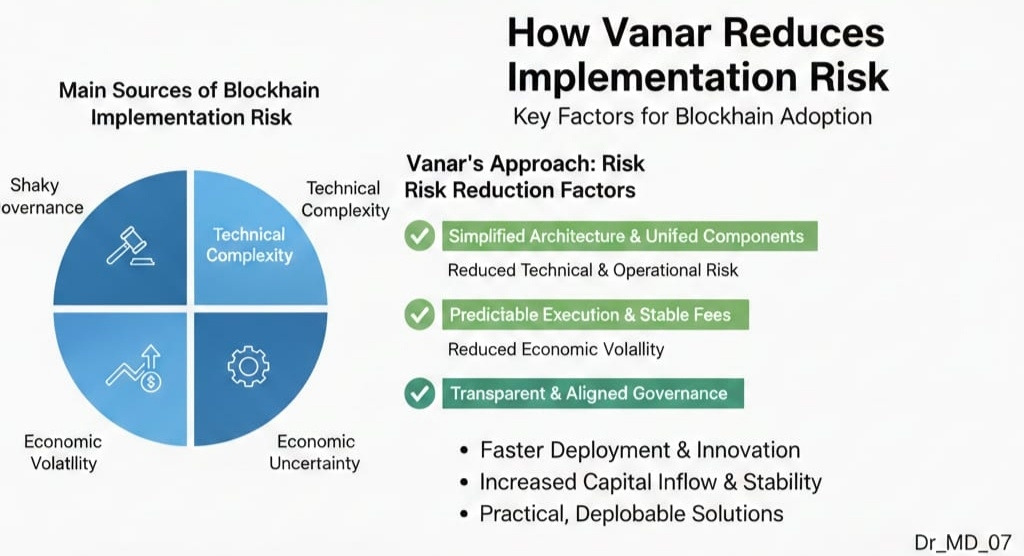 I’m Dr_MD_07, and I want to dig into why Vanar Chain stands out and why I keep coming back to implementation risk as the real make-or-break factor for blockchain adoption. I’ve spent years analyzing infrastructure projects. These days, with AI and modular blockchains shaking up the scene, the stakes are even higher.