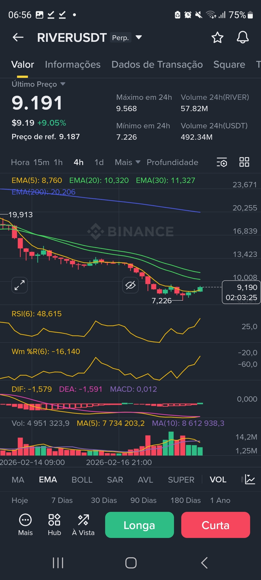 O gráfico de 15M mostra candles com pavios inferiores, indicando absorção de compra na região de 8.800. O preço rompeu a resistência local e busca agora a EMA(200) no gráfico de 1H (12.957), que atua como resistência macro.
