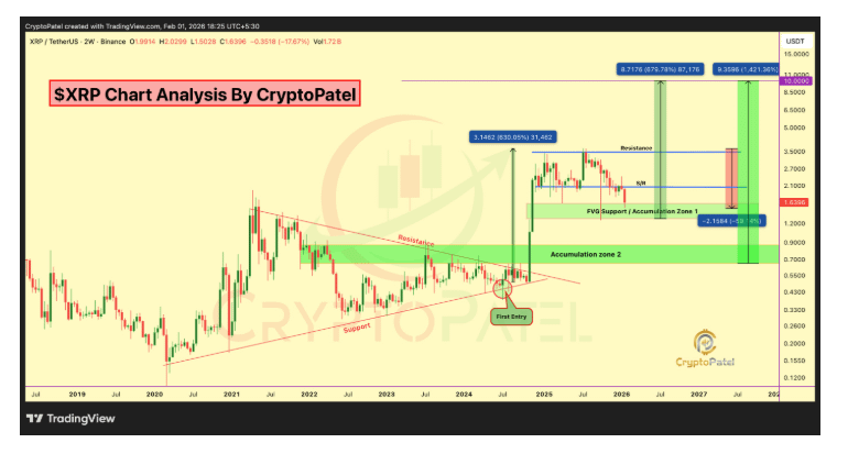 CryptoPatel ve una reversión de tendencia macro tras la ruptura de un triángulo de 4 años; XRP puede consolidarse entre $1 y $1.50.
