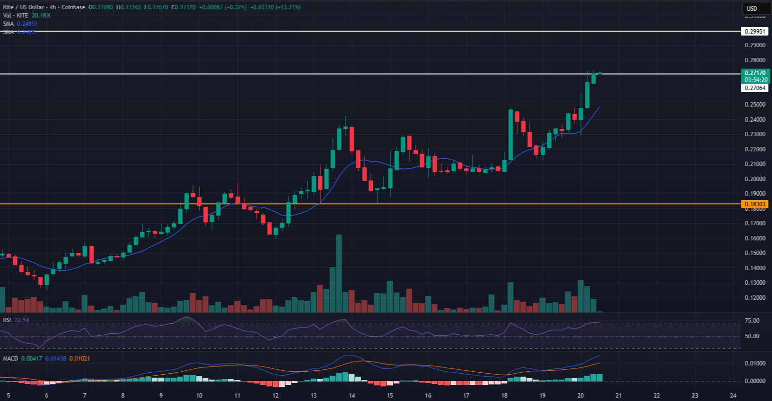 Khả năng tiếp diễn xu hướng phụ thuộc hoàn toàn vào việc phe mua có thể đóng các nến 4 giờ vững chắc trên mốc $0.27 để tiến vào vùng $0.30–$0.35 hay không. Nếu thất bại, hãy chuẩn bị cho một cú rũ đòn bẩy. Hỗ trợ động đầu tiên nằm ở đường SMA $0.248, nhưng một đợt điều chỉnh sâu hơn có thể dễ dàng kéo $KITE xuống mức thoái lui Fibonacci 50% tại $0.1995 (~$0.20) trước khi xu hướng tăng vĩ mô tiếp tục.