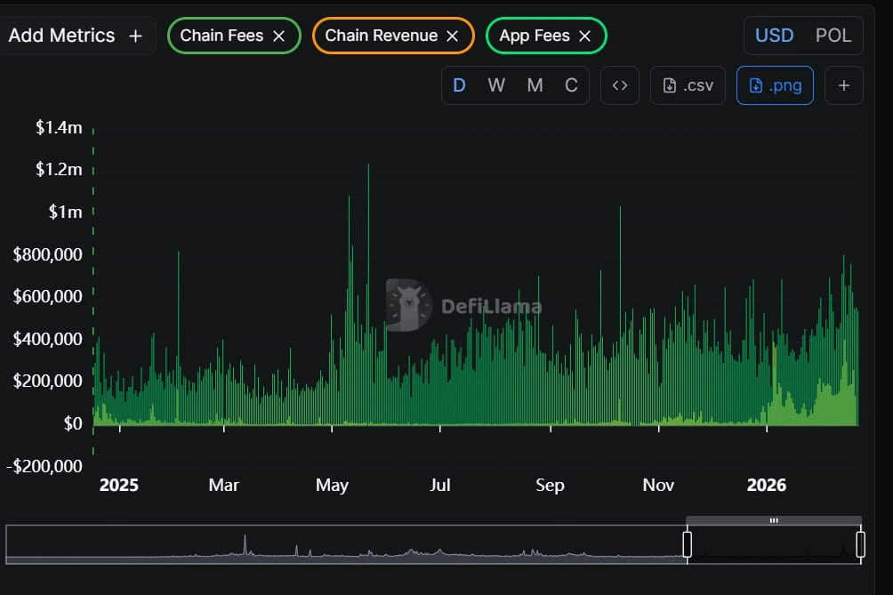 Việc đốt token liên tục phản ánh mức độ sử dụng mạng lưới rất cao. Doanh thu và Phí hàng ngày đã ổn định trên mức 200.000 USD, với Phí ứng dụng duy trì trên 500.000 USD, chứng tỏ nhu cầu sử dụng thực tế đang rất mạnh mẽ.