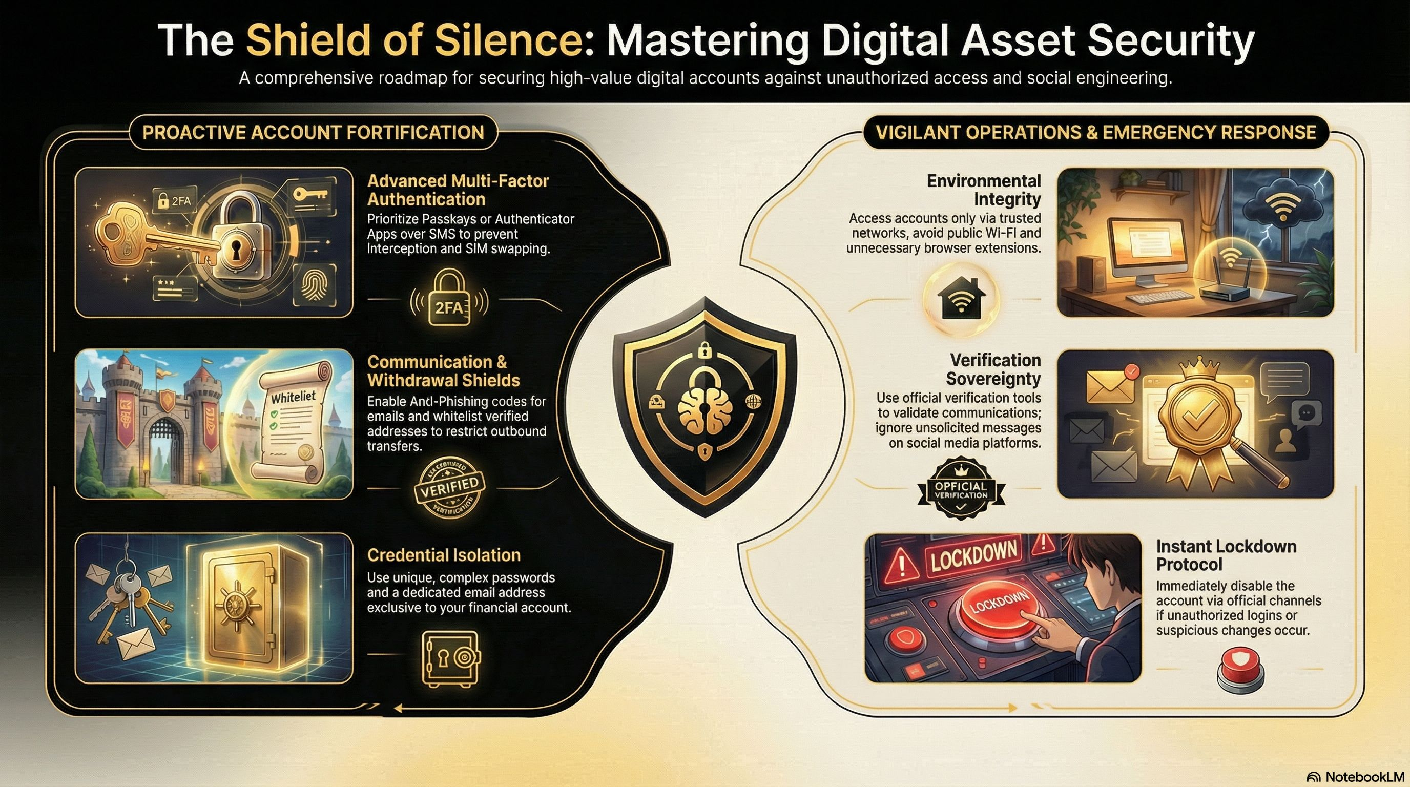Este cambio en la responsabilidad requiere un enfoque de grado profesional hacia la Seguridad Operacional (OpSec). En un ecosistema semi-centralizado, el protocolo de blockchain en sí rara vez es el punto de falla; más bien, la interfaz entre el usuario y la plataforma sirve como el vector de ataque principal. Una postura de seguridad robusta reconoce que el error humano y las vulnerabilidades de la interfaz son los mayores riesgos. Al establecer un marco estratégico disciplinado, los usuarios pasan de parches reactivos a construir un sistema de defensa proactiva en profundidad diseñado para preservar la integridad de los activos contra un paisaje de amenazas cada vez más sofisticado.