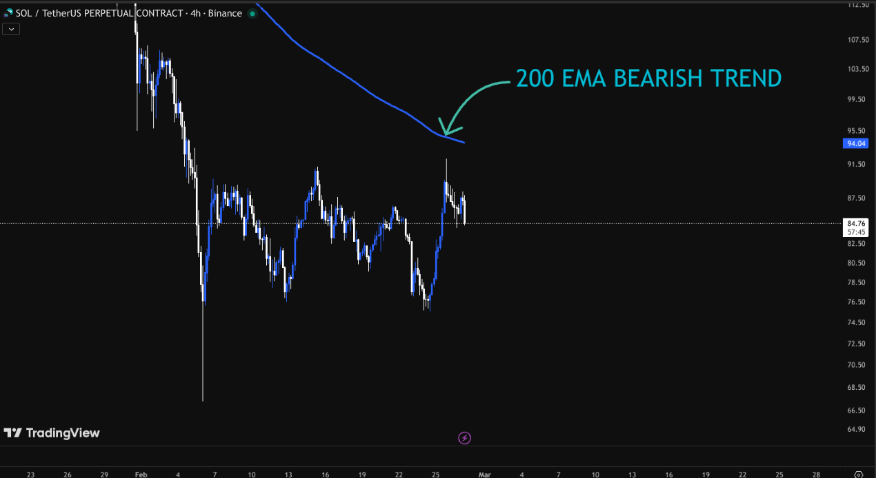 En el marco de tiempo de 4 Horas (4H), la EMA 200 está por encima del precio actual.