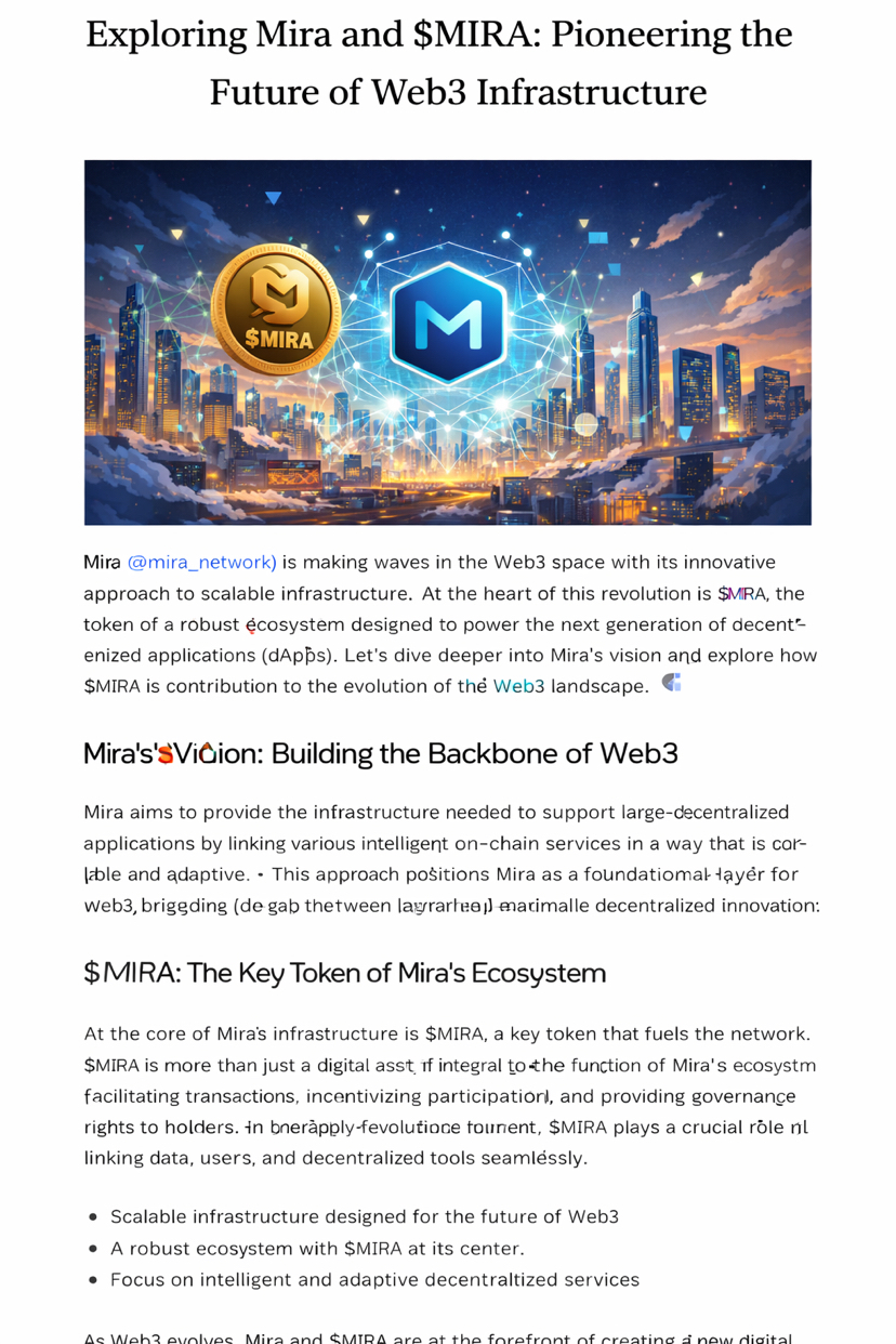 Diving deeper into the innovation coming from @Mira - Trust Layer of AI mira_network 🚀 $MIRA is building a powerful ecosystem focused on scalable, intelligent infrastructure for the next wave of Web3 adoption. The way Mira connects data, users, and decentralized tools shows real long-term vision. Excited to see how #mira Mira and $MIRA continue shaping the future of on-chain innovation! #Mira