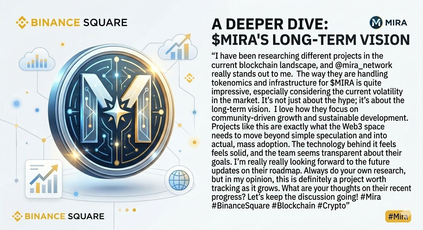 The technology behind it feels solid, and the team seems transparent about their goals. I’m really looking forward to the future updates on their roadmap. Always do your own research, but in my opinion, this is definitely a project worth tracking as it grows. What are your thoughts on their recent progress? Let’s keep the discussion going! #Mira #BinanceSquare #Blockchain #Crypto"