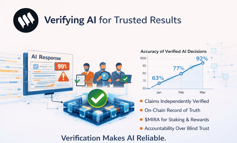 Cuanto más estudio la Red Mira, más siento que la verdadera oportunidad aquí está siendo malinterpretada. Mucha gente todavía habla de la IA como si lo único que importa es la calidad del modelo, la velocidad o el poder de razonamiento en bruto. Pero no creo que el próximo gran cuello de botella sea solo la inteligencia. Creo que es la confianza. El propio posicionamiento de Mira está centrado en esa idea exacta: construir una capa de confianza para la IA verificando salidas y acciones a través de la inteligencia colectiva en lugar de pedir a los usuarios que confíen ciegamente en un solo modelo o proveedor.