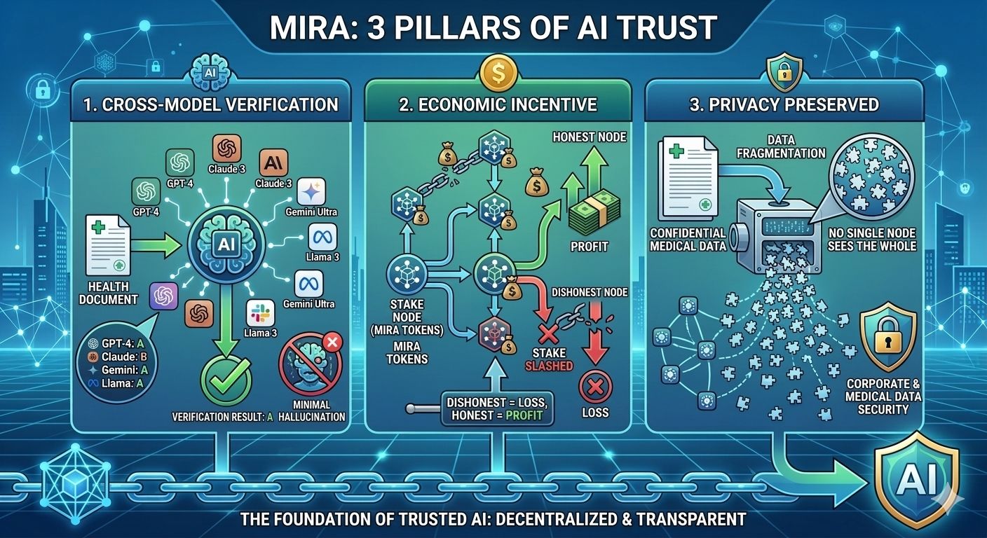 Cross Model Verification: Mira doesn't rely on a single AI. Instead, it utilizes dozens of different models that cross check each other. If GPT-4 says A, Claude says B, and Gemini says A, then A is most likely correct. This diversity significantly reduces hallucinations and bias simultaneously.