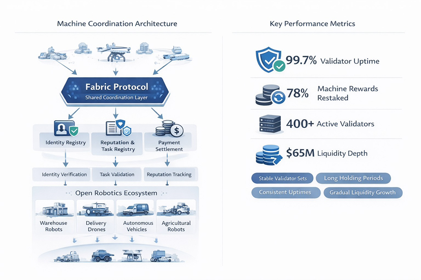 Validator infrastructure maintaining stable uptime despite modest reward fluctuations often suggests that operators view the network as operational infrastructure rather than short-term yield. Nodes responsible for validating machine activity must behave more like backend service providers than speculative participants.