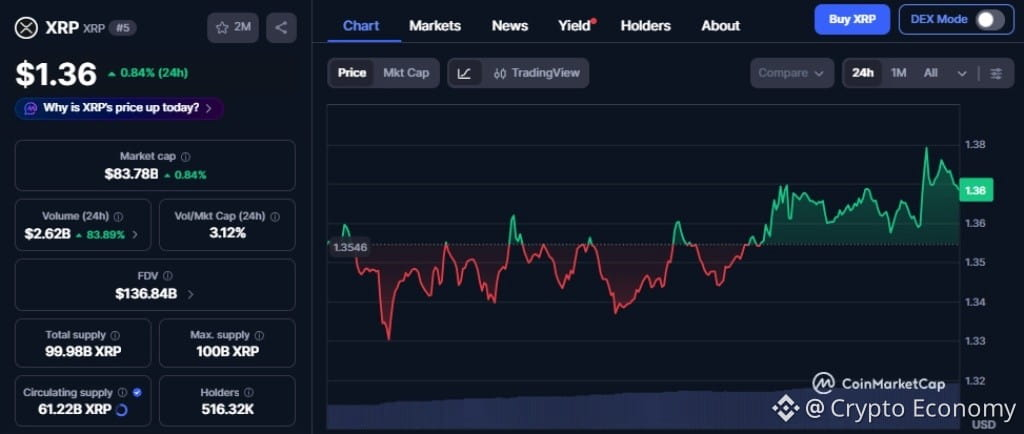 Según las cifras de CoinMarketCap, el volumen de comercio al contado de XRP creció un 84% en las últimas 24 horas, alcanzando $2.62 mil millones. En el mercado de derivados, el aumento alcanzó el 67%, con un volumen de $3.22 mil millones, según datos de CoinGlass.
