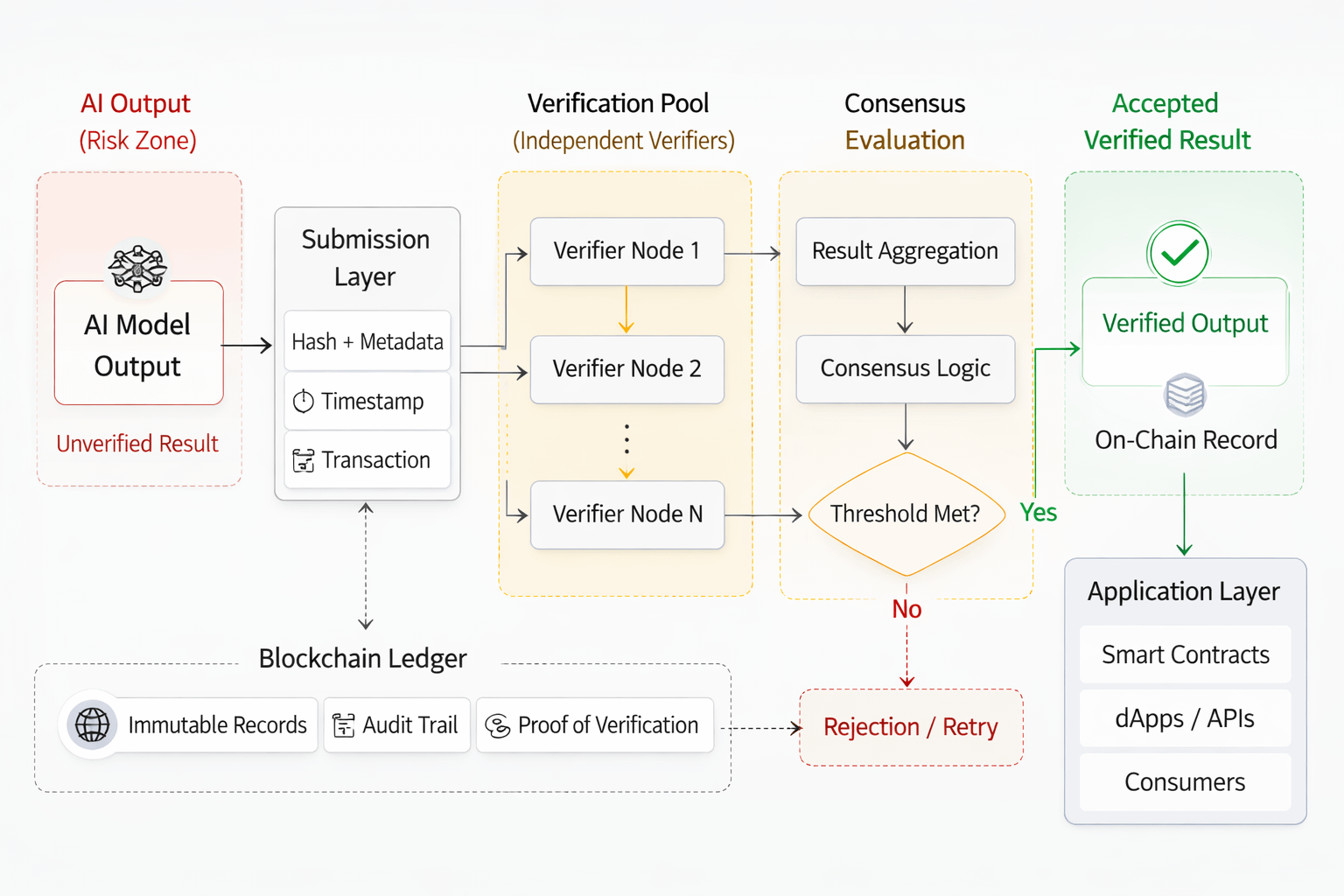 Salida de IA → Ronda de Verificación → Acuerdo de Validador → Resultado Aceptado