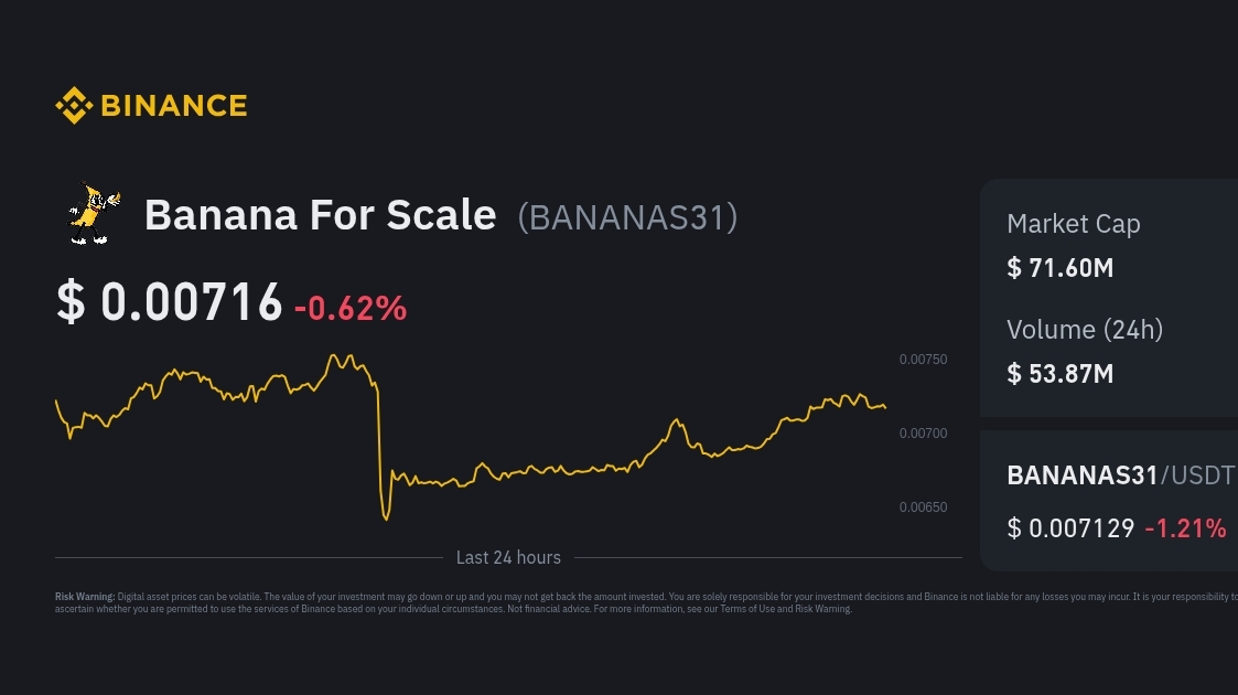 $BANANA La idea principal detrás de los proyectos de Banana Coin es combinar la tecnología criptográfica con la participación de la comunidad y el branding creativo. En algunos casos, el token se utiliza para financiar programas de caridad, como el patrocinio de la educación de los estudiantes.$BANANA Banana Coin representa el lado creativo y experimental del mercado de criptomonedas, donde los desarrolladores lanzan tokens únicos para la participación de la comunidad, herramientas DeFi o iniciativas de caridad. Mientras tanto, $BNB Binance Coin (BNB) sigue siendo una columna vertebral importante de la industria cripto, apoyando el intercambio de Binance y la red BNB Chain.