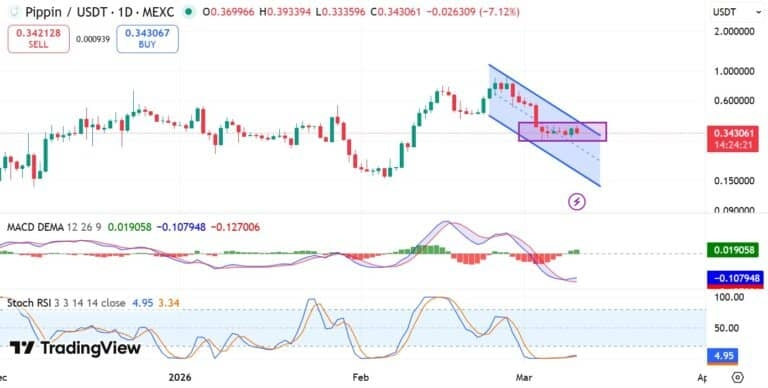 Si miramos los indicadores técnicos, la cosa se pone seria: tanto el RSI como el MACD nos están contando una historia de debilidad. Aunque intentan dar alguna señal de vida, siguen estancados en zonas negativas que sugieren que la tendencia bajista tiene el control del volante. Mientras los vendedores sigan dominando el mercado al contado, PIPPIN va a seguir bailando en ese rango incómodo entre los 0,30 y los 0,40 dólares. 📊