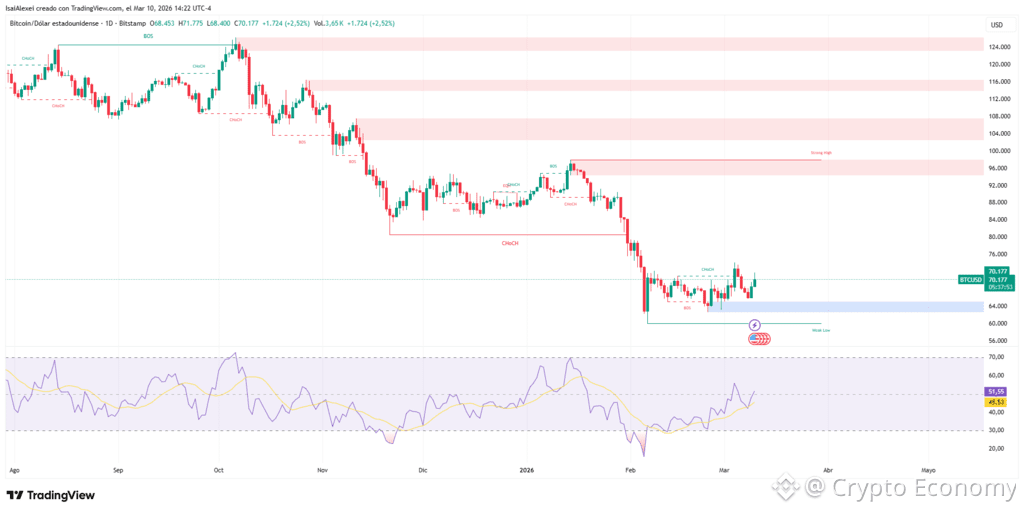 Este reciente repunte en el precio de Bitcoin refleja un intento del mercado de recuperar niveles técnicos clave después de varias semanas de consolidación y presión a la baja, colocando el activo una vez más cerca de una zona psicológica que es extremadamente relevante para traders y fondos institucionales.
