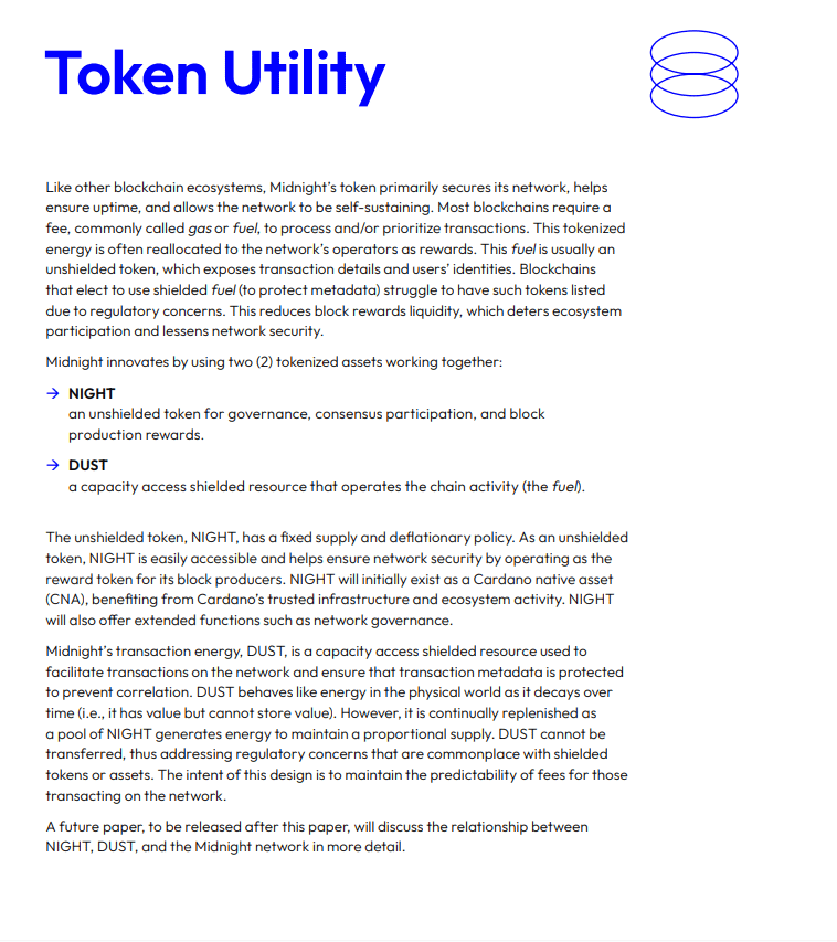 Una característica importante de DUST es que no está diseñado para almacenar valor. Midnight describe DUST como energía en el mundo físico: tiene valor de uso, pero se “desgasta” con el tiempo.