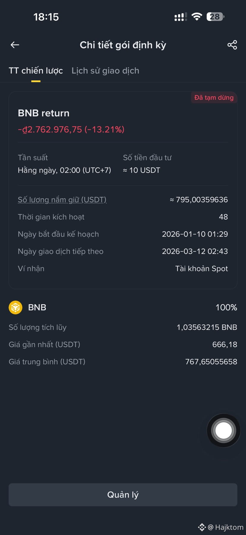 Nay coin tăng vào ngó xem tình hình dca thế nào thì còn lại âm 13%, khá ổn các bác ạ.