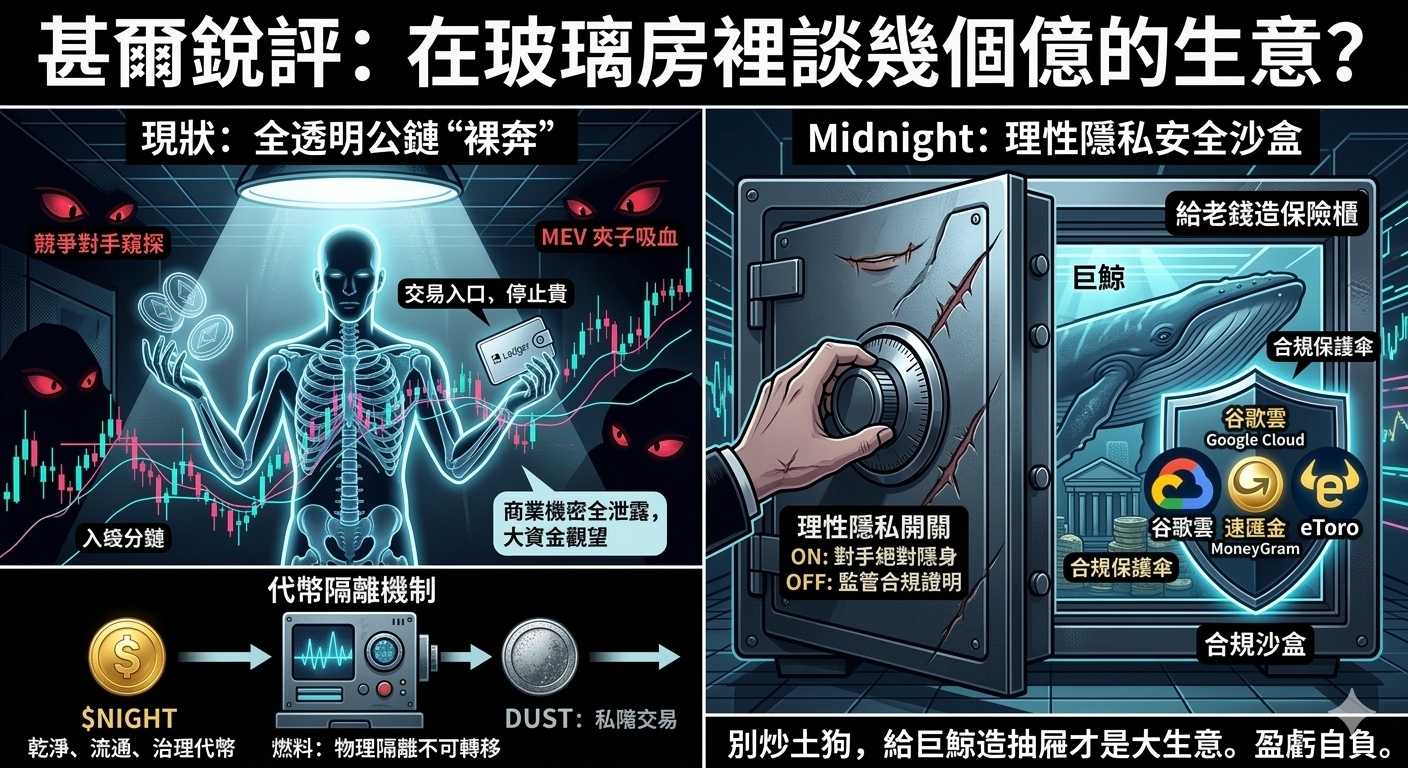这几天我深度复盘了 @MidnightNetwork 的底层逻辑。这帮人最清醒的地方在于,他们终于把“隐私”从一种乌托邦式的极客幻想,降落到了极其理性的商业现实