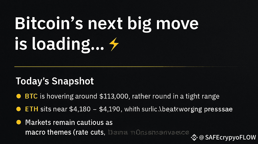 BTC está flotando alrededor de $113,000, operando en un rango estrecho después de una modesta volatilidad intradía.