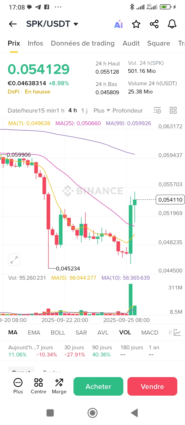 3. Interés del mercado: La reciente cotización de SPK en la plataforma Upbit ha suscitado un interés moderado por parte de los inversores, con el precio aumentando inicialmente alrededor del 9,84 %. Este interés está respaldado por un sentimiento muy positivo dentro de la comunidad, evocando un "aumento brutal" y un "pump en curso" después de un período de consolidación.