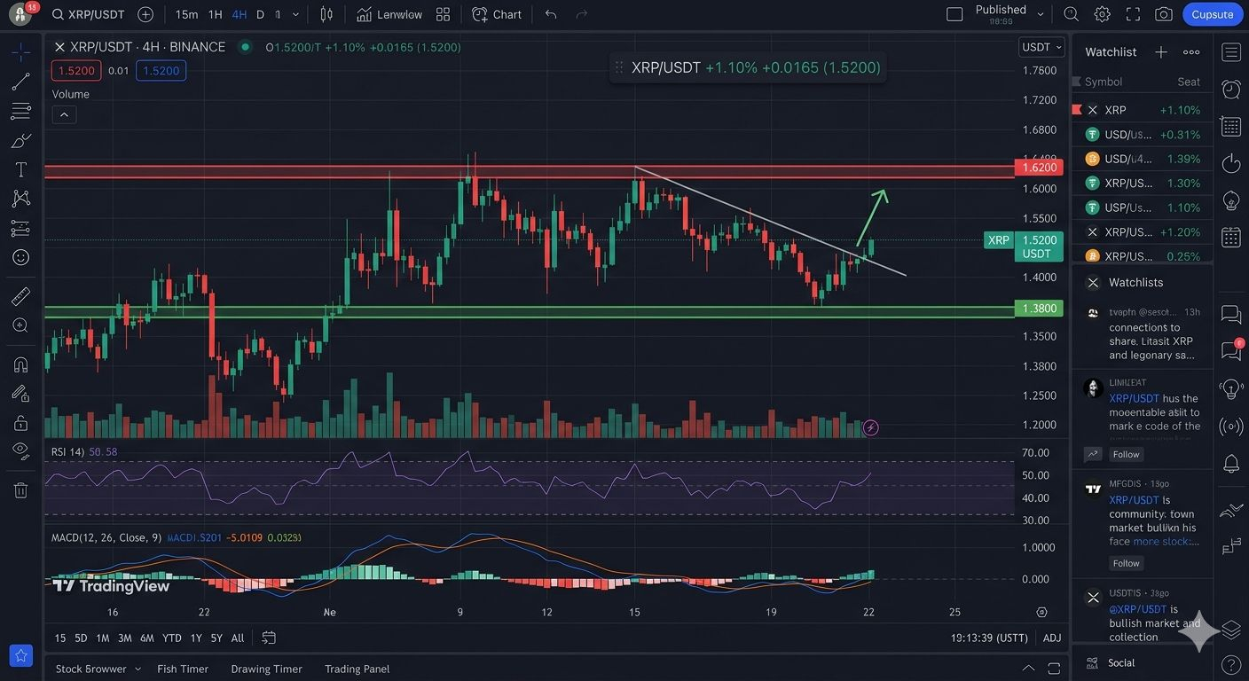 Overall Sentiment: Cautious Bullish BiasXRP just bounced strong from $1.42 and is pushing toward $1.65 🚀