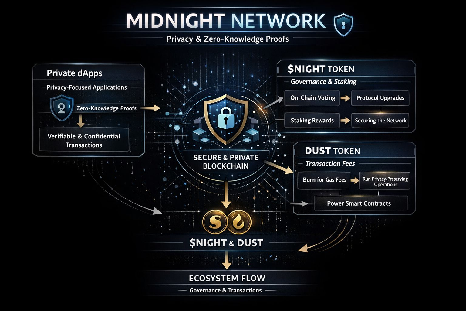 Otra pieza del rompecabezas que llamó mi atención es cómo $NIGHT interactúa con DUST para impulsar transacciones. DUST actúa como una capa de utilidad que los participantes pueden quemar o gastar para cubrir costos de transacción, finalizar operaciones que preservan la privacidad, o habilitar ciertas características que preservan la privacidad en contratos inteligentes. En la práctica, la combinación de $NIGHT y DUST crea una dinámica de dos tokens donde las operaciones rutinarias se vuelven asequibles y los procesos mejorados en privacidad no se ven limitados por la escasez de un solo activo. El diseño se siente deliberado: no dependes de un solo token para todo, sino más bien de un dúo complementario que apoya tanto la gobernanza como el flujo de transacciones diarias. Es un patrón que estaré observando a medida que la red madura.